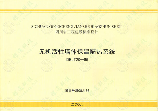 四川省工程建設標準設計《無機活性墻體保溫隔熱系統》統一編號:DBJT20-65  圖集號:川08J136,批準部門:四川省建設廳,主編單位:四川時代建筑設計有限公司,協編單位:南陽銀通節能建材高新技術開發有限公司 南陽市銀達新型墻體材料開發有限公司