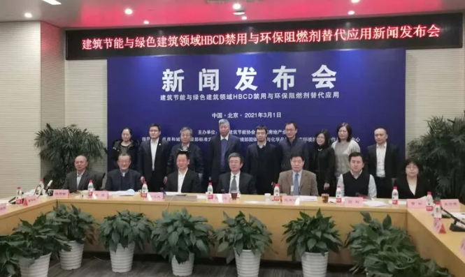 3月1日,中國建筑節(jié)能協(xié)會(huì)聯(lián)合中國房地產(chǎn)業(yè)協(xié)會(huì)在北京共同召開了建筑節(jié)能與綠色建筑領(lǐng)域禁用HBCD新聞發(fā)布會(huì),倡導(dǎo)建筑節(jié)能與綠色建筑領(lǐng)域上中下游企業(yè)共同禁用HBCD并推廣應(yīng)用環(huán)保阻燃劑。