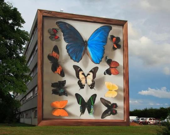 透過在世界各地建筑外墻上繪制大型蝴蝶標本,由此來提醒大眾,近幾十年來蝴蝶數量持續減少中,這是我們人類不得不重視的問題。