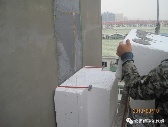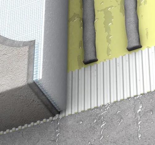 所以在2009年,美國(guó)新的法規(guī)規(guī)定保溫系統(tǒng)需要有排水槽,穿墻管等部位的密封處理。新設(shè)計(jì)的的外墻外保溫系統(tǒng)中要做出防水溝或排水槽,排水溝是用鏝刀將粘結(jié)砂漿批出膠條;排水槽是保溫板加工出溝槽。