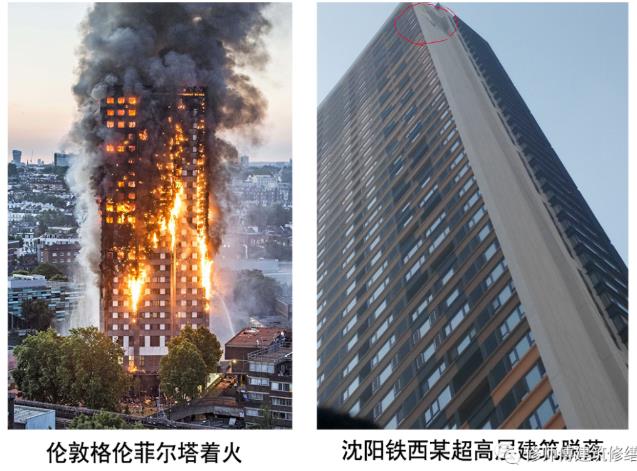 圖五:倫敦格倫菲爾塔和沈陽(yáng)鐵西廣場(chǎng)某高層建筑都是使用的的聚脲異氰酸酯發(fā)泡板,一個(gè)著火、一個(gè)因?yàn)榉刍撀洌梢?jiàn)選用保溫材料及系統(tǒng)應(yīng)該是是非常謹(jǐn)慎的事