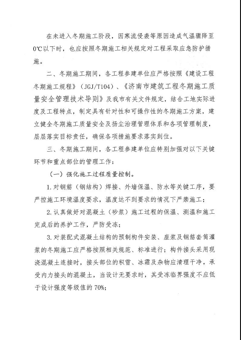 重磅丨濟南冬期施工期間,外墻保溫、防水等關鍵工序、施工環境溫度達不到要求嚴禁施工