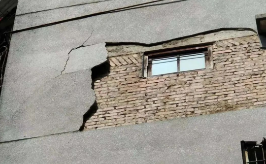 當(dāng)時(shí)“轟”一聲,把二樓雨篷砸爛了,砸破了,幸好下面沒(méi)有人,響聲很大,看外墻又要脫落。——市民