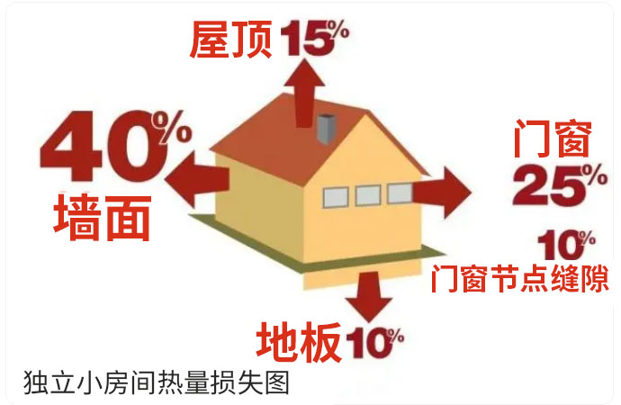 這是因為窯洞四周及頂子都很厚,能很好的保溫隔熱。然而隨著現代建筑材料、建筑技術的普及,那些清一色的紅磚、鋼筋混凝土的房屋成為了建設的主流,這些房屋既結實耐用,又方便快捷,深受人們的歡迎。然而不知為何卻忽視了房子的保溫、隔熱這件事。有的是不知道,有的是覺得麻煩沒必要,有些覺得浪費錢,其實這樣的想法是不可取的。為什么這么說呢?我們不妨了解下一間房子的熱量都損失在哪了吧。