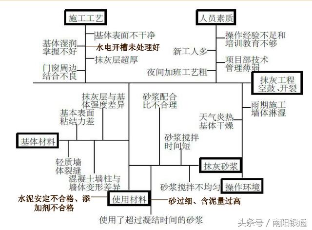 六、抹灰工程出現空鼓開裂質量缺陷的因果分析圖